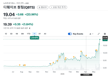 지난밤 미국 증시에 상장된 양자컴퓨터 관련 기업들이 일제히 강세를 보였습니다. 대표적으로 **아이온큐(IonQ)**는 하루 만에 주가가 무려 36% 급등하며 투자자들의 이목을 집중시켰는데요. 리게티 컴퓨팅(26%), 디웨이브 퀀텀(24%)도 큰 폭으로 올랐습니다. 이처럼 전반적인 상승세는 양자컴퓨팅 업계에 불고 있는 M&A 기대감에서 비롯된 것으로 분석됩니다.
