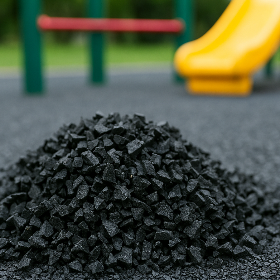 잘게 분쇄한 타이어는 놀이터나 체육관 바닥, 조깅 트랙 등에 사용됩니다.