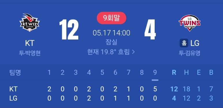 오늘(5월 17일 토요일)은 더블헤더 일정이 있었고, 모든 1차전 경기가 종료됐습니다.
